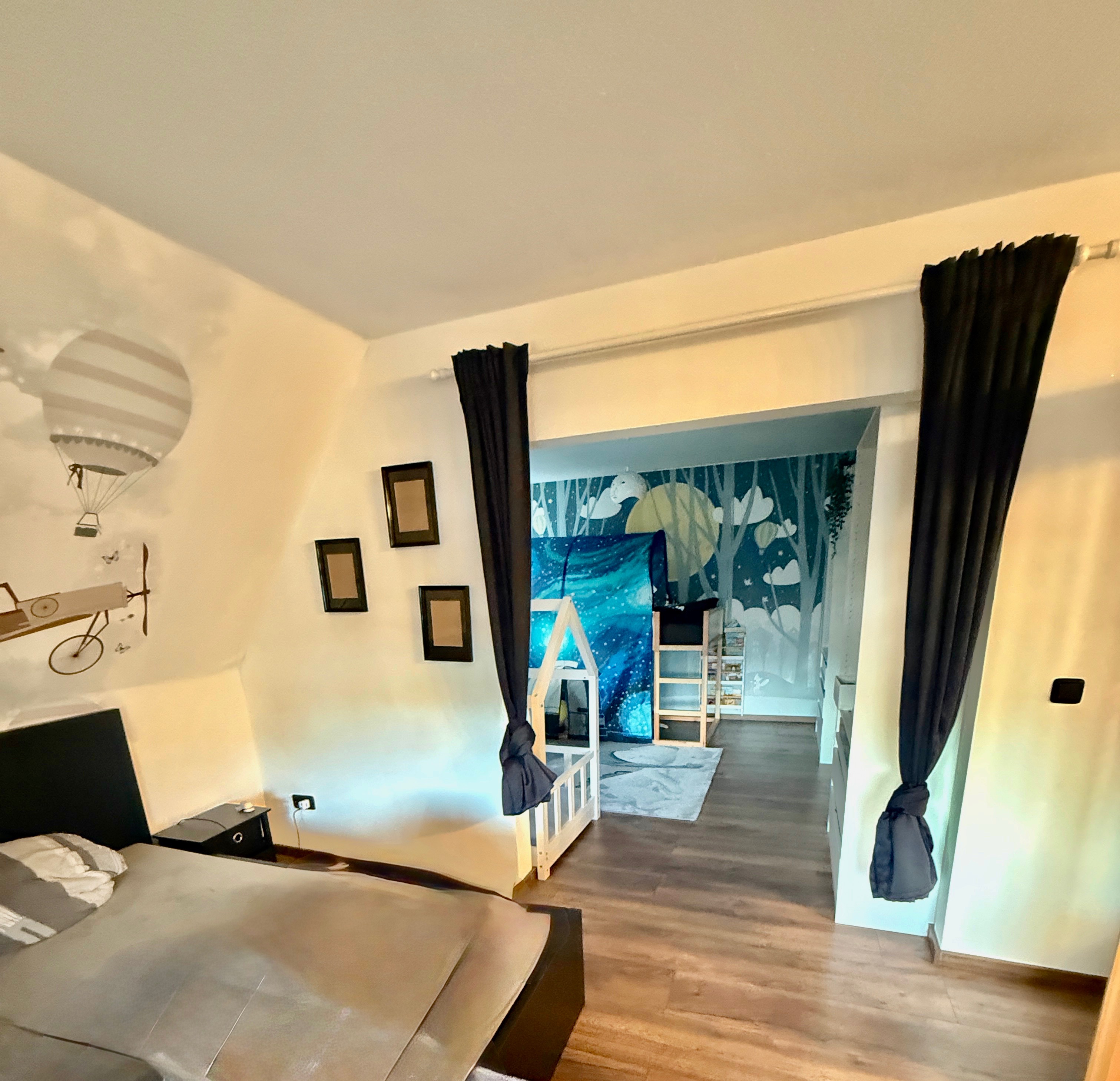 Im Obergeschoss befinden sich Schlaf- Kinder- und Arbeitszimmer sowie eine Loggia mit ca. 19,5 m², die zusätzlich Freiraum bietet und zum Verweilen einlädt, zumal die Ausrichtung südlich liegt.