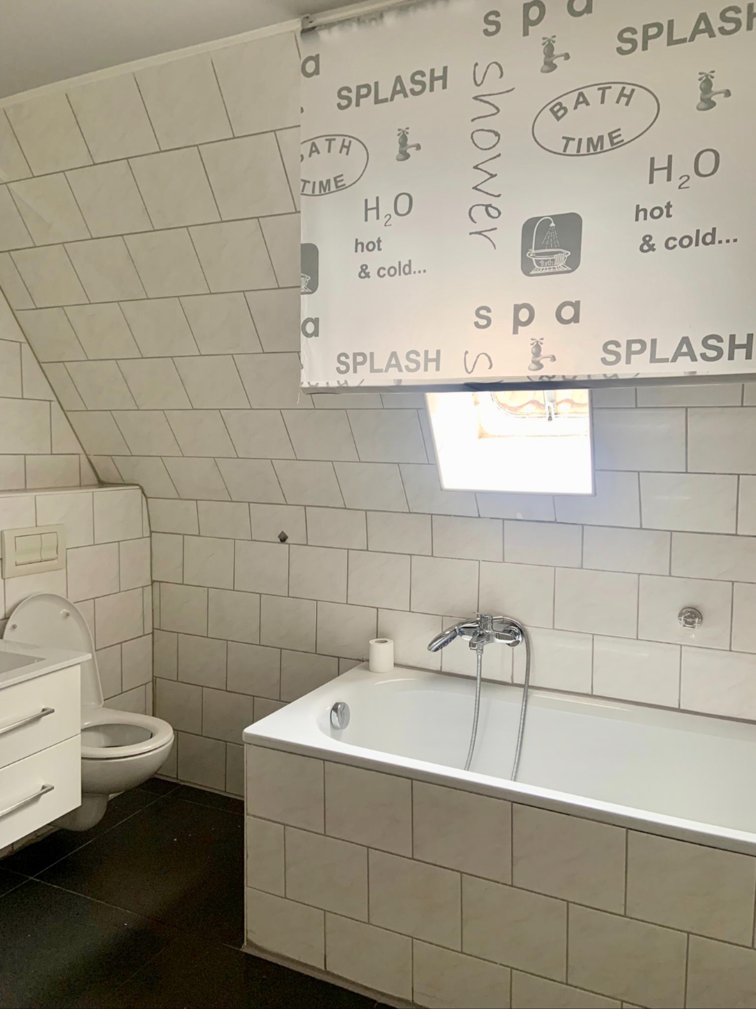 - Ausstattung des Bades Fenster, Badewanne
