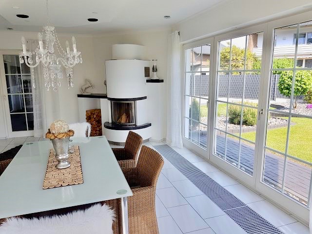 Ein herrlich durchdachtes Raumkonzept, welches durch die bodentiefen Fenster (teilweise Dreifachverglasung), der Kaminanlage im Wohnbereich, der einladenden offenen Einbauküche angrenzend am Wohn- bzw. Essbereich sowie inkl. dem im Flurbereich erreichbaren Ankleidezimmer, Schlafzimmer inkl. angrenzendem Badezimmer mit einer ebenerdigen Dusche und Doppelwaschtischen, keine Wünsche offen lässt und barrierefreies Wohnen möglich macht.